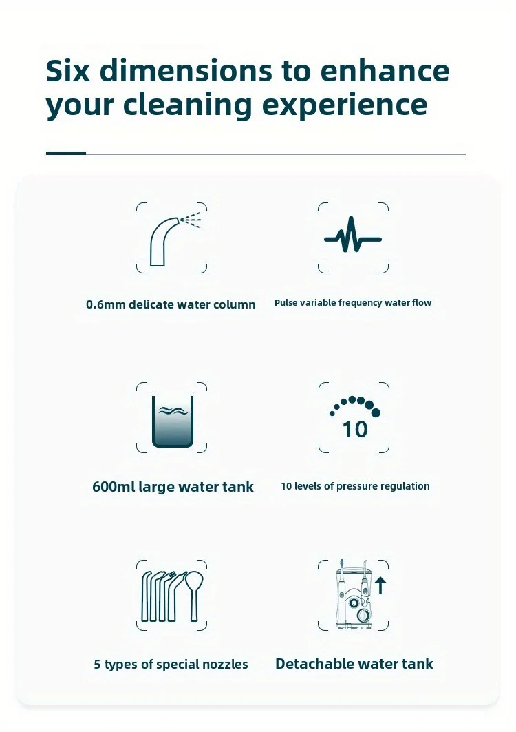 2-in-1 Electric Toothbrush Water Flosser Oral Irrigator 600ML Desktop Water Flosser Dental Irrigation with 7 Nozzles for Homeuse