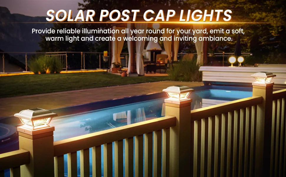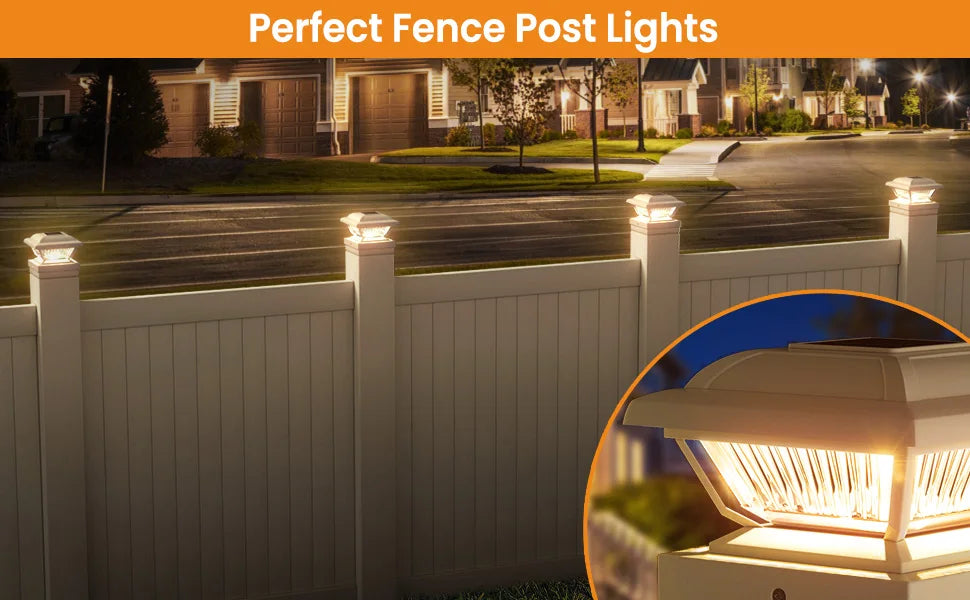 6/12 Pack Solar Post Cap Lights, White/Black, Fits 3.5x3.5-5.5x5.5 Posts for Garden/Fence/Deck/Yard